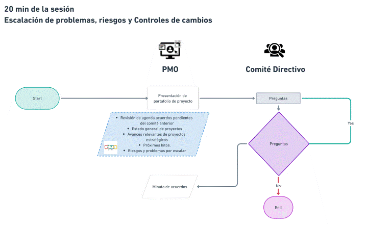 El Comité Directivo revisará de manera periódica los riesgos críticos y problemas escalados por los Project Managers, Sponsors o la PMO.